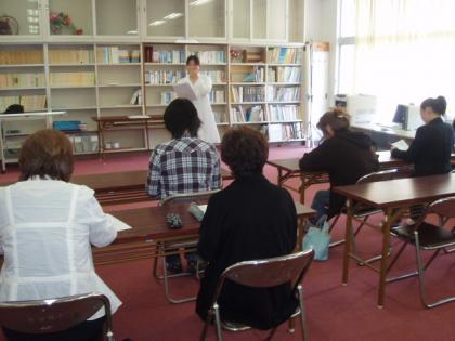 給食試食会終了後に、本校栄養士宮脇による給食にかんする講話をしています。