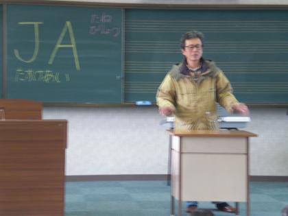 12月9日(水)JA(農協)に勤めて、口野に住んでいる足立さんにお話をしていただきました。「たすけあい」の精神で生まれ、仕事をしている。との事でした。