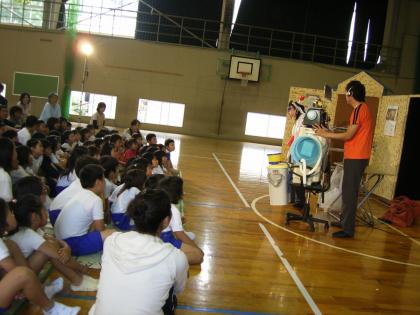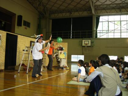 5月24日、本校体育館にて、劇団風の子による観劇教室「ロボットじろう」を行いました。一郎君の家の引っ越しの様子をコミカルに描いた作品で、至る所に笑いがちりばめられ、体育館中が爆笑の渦に巻き込まれました。多比保育園の園児たちや地域の皆様も鑑賞され、楽しい1時間を過ごすことができました。