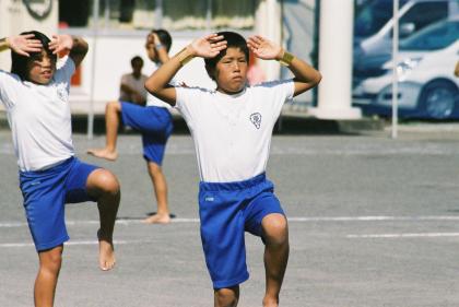 9:00の時点で雨が降ってきました。9:30〜10:00まで一時中断しましたが、のちは良い天気。子どもたちは力一杯競技しました。