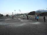 冷え込んだ朝は運動場の水分が凍ってしまい、太陽が地面に当たって午前8時を過ぎると解けた水で運動場がぬかるんでしまいます。