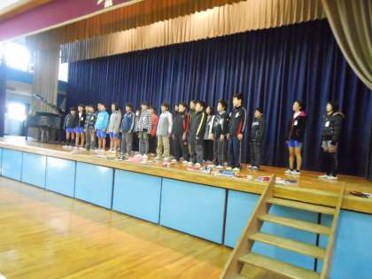 いよいよ合唱コンクール当日です。ステージでの練習に気合いが入ります。ステージの上は緊張しますね!がんばれ!!