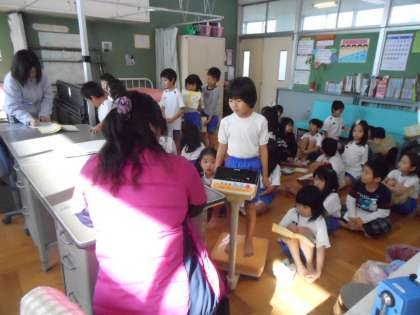 その後、身長と体重を量りました。
