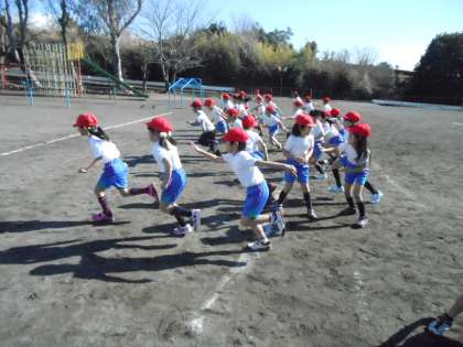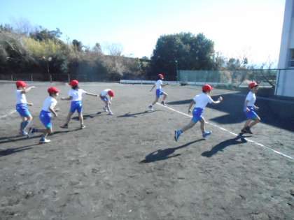 先生の、「ね〜、ね〜、ねこ」、「ね〜、ね〜、ね〜、ねずみ」「ね〜、ね〜、ねっこ」…という声に反応して、ペアの相手を追いかけます。