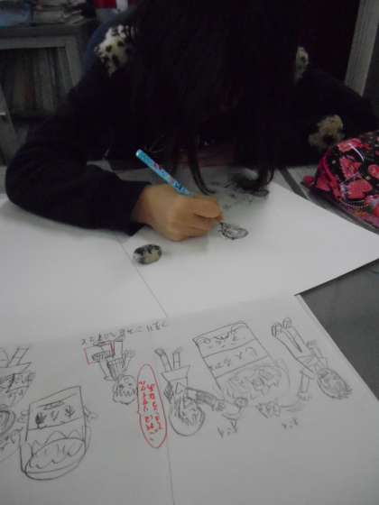 5年生は、美化委員会のポスター作りに取り組んでいます。得意なイラストを書いていました。