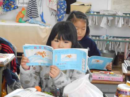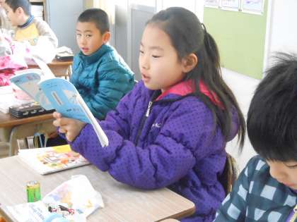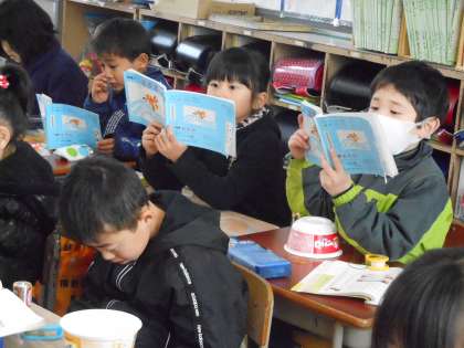 2年生は、音読集『おがわ』を使って、音読練習をしています。