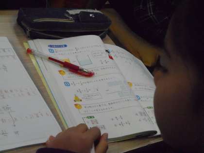 帯分数の引き算のやり方を考えました。整数から分数にくり下げて計算する方法に、頭を悩ませながら問題を解きました。