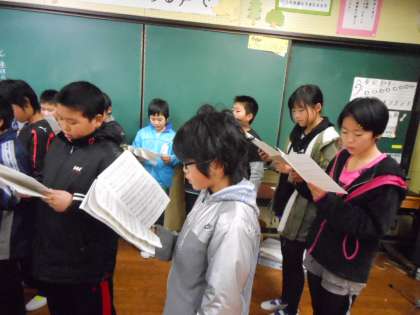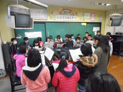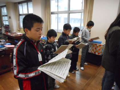 「旅立ちの日に」の練習を始めました。昨年の6年生の卒業式での歌を聴いている子どもたちは、自分たちもがんばろうという気合いが入っています。