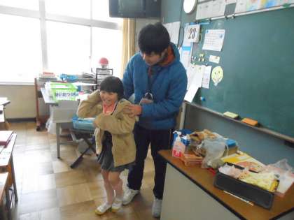 その後に、小さな頃に使っていた服や靴を持ってきてくれていた子がいたので、どれだけ大きくなったか、着ようとしてみたり履こうとしてみたりといろいろな方法で昔と今の違いを調べました。
