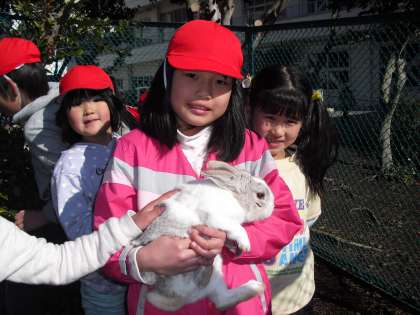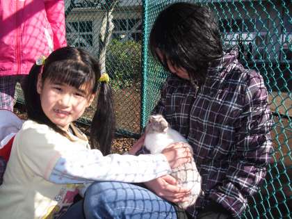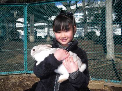 うさぎをやさしくなでたり、大事そうにだっこしたりしてうれしそうでした。