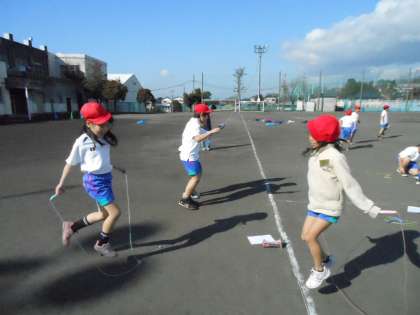 みんな、なわとび運動をがんばっています。それぞれの目標に向かって、少しでも級を上げようとしています。