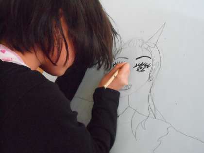 墨で線描きすると、力強いタッチで迫力のある鬼が描けそうです。個性が出ていておもしろいです。