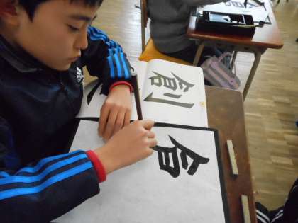 筆の向きや筆の運び方に気をつけながら書いていきました。集中してがんばっていました。