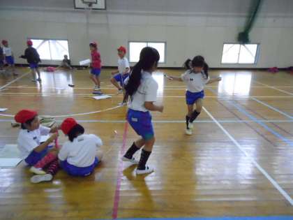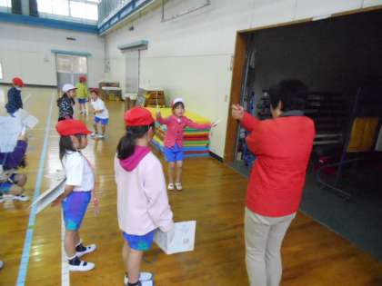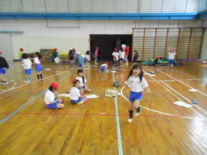 体育館で縄跳びをしました。