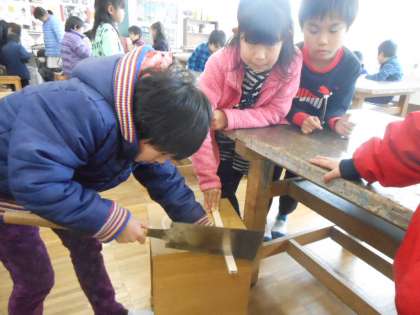 初めてのこぎりを使う子もいて、悪戦苦闘していました。