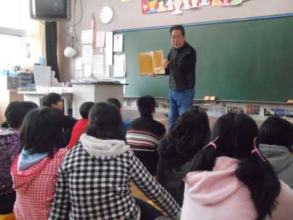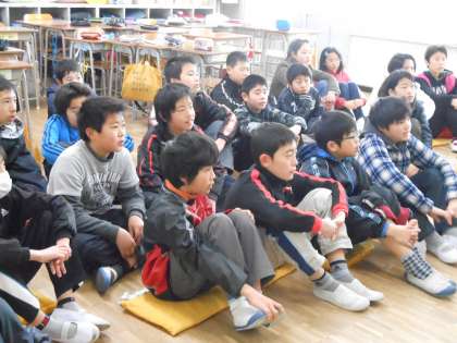 6年生の教室では、宮沢賢治の名作の読み聞かせをしていただいているクラスもありました。