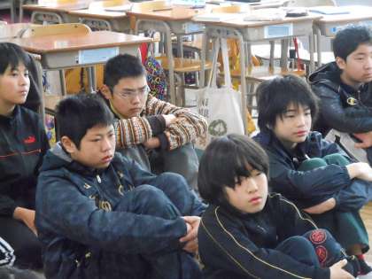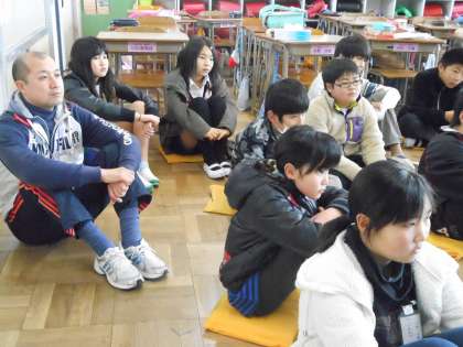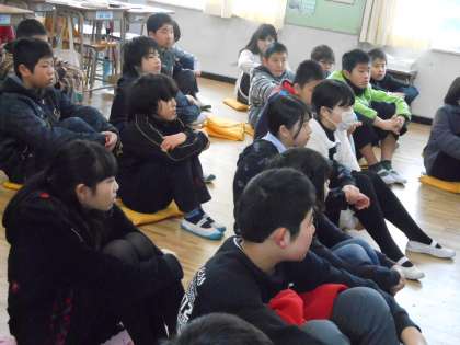 6年生の教室では、なかよし学級の子も一緒にお話を聞き入っていました。