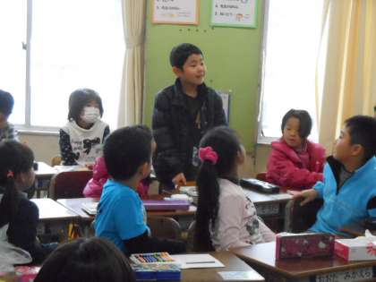 そして、6年生を送る会で渡すプレゼントを作りました。気持ちを込めて作っていました。