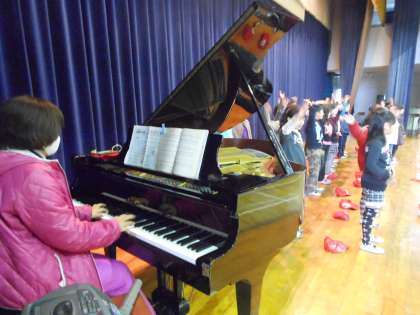 昼休みに、あしたかミニコンサートが行われました。2年生の上手な合奏とかわいい踊りが披露されました。
