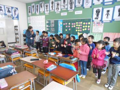 1年生になってできるようになったことを、年長さんの前で発表します。