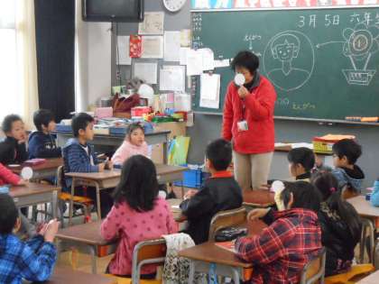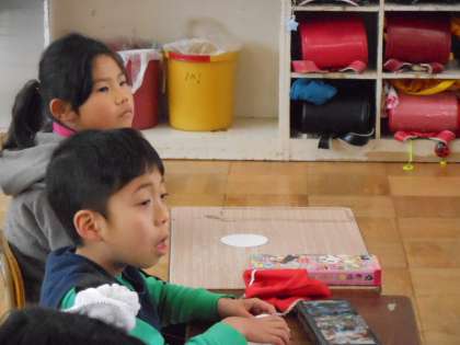 子どもたちは、六年生の顔を丁寧に仕上げていました。