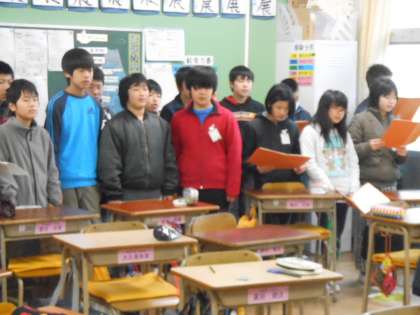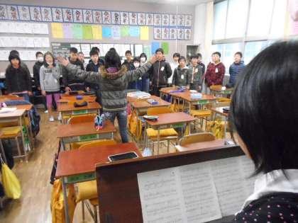 6年生の教室からは、卒業式で歌う『旅たちの日に』が響いていました。