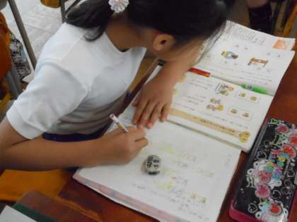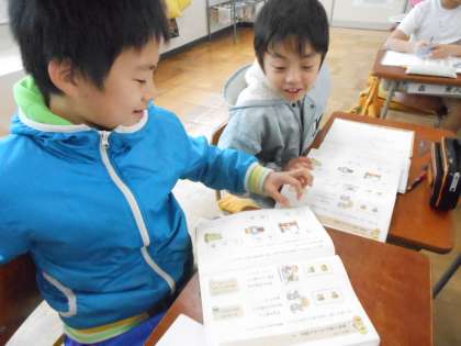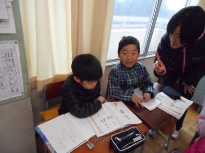 子どもたちは、二つの漢字を組み合わせての単文作りに夢中になっていました。
