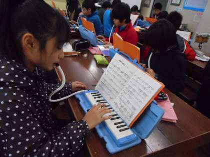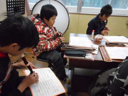 小学校最後の合奏曲「名探偵コナン メインテーマ」。心を合わせていいものができるよう、気持ちを高めて練習をしています。