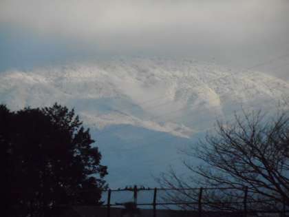 曇り空から顔を出した愛鷹山は、雪をまとっていました。