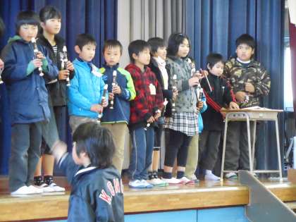 本日のミニコンサートは高学年の発表でした。「ふるさと」を一生懸命合唱・合奏しました。