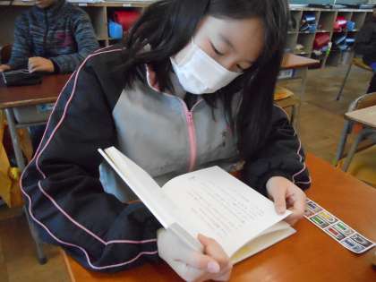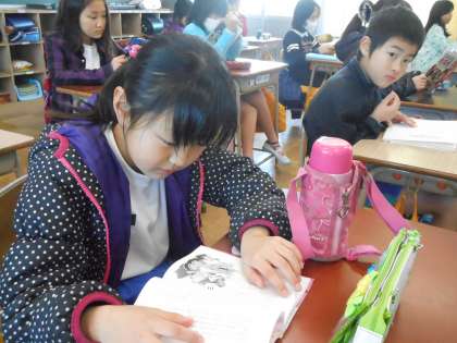 4年生の教室でも、静かに朝読書に取り組んでいました。