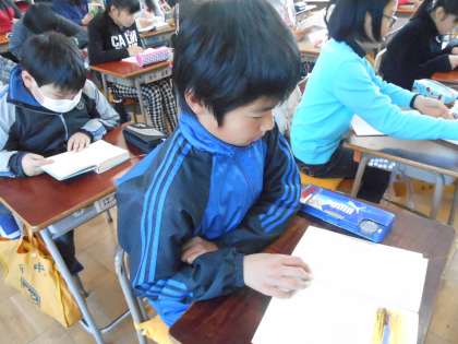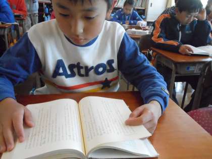 5年生の教室では、集中して朝読書に取り組んでいました。