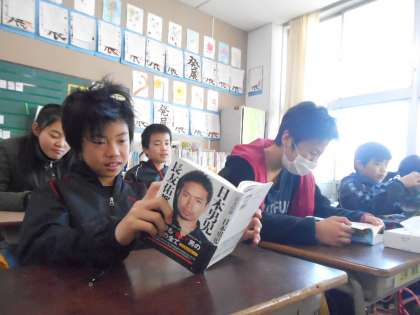 6年生の教室では、有名なサッカー選手の本を読んでいる児童もいました。