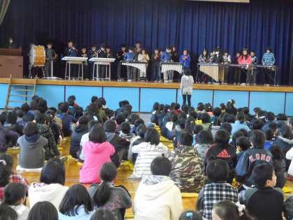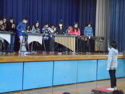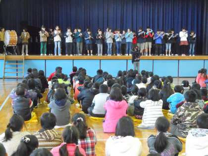 20日の昼休み、体育館であしたかミニコンサートが行われました。クラスでの迫力のある合奏やきれいな歌声が披露されました。