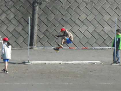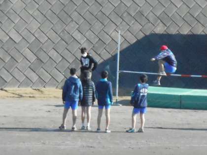 高跳びにチャレンジしています。Aグループは103cm、Bグループは80cmにチャレンジしています。跳び方もなかなか上手になってきました。