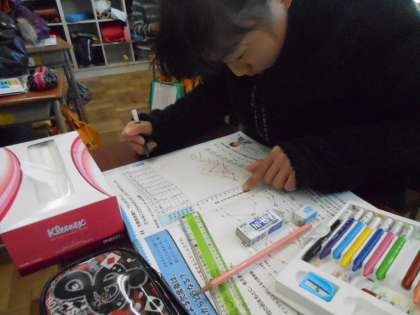 保健室から愛鷹小学校の2週間分の欠席者の資料を借りて来て、学年ごとにグラフに表しました。このグラフから、欠席者はどのようになっていくかを予想します。また、各学年へのメッセージも考えます。