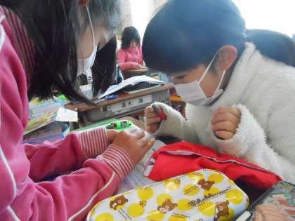磁石には鉄がくっつくと分かってきたことをもとに、プラスチックや紙が鉄に巻きつけられていても磁石に引きつけられるか実験しました。磁石を使って、クリップが浮いたのにはびっくりしました。