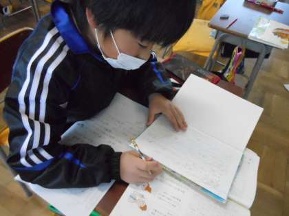 2年生との交流についてのアイデアを各自で考え、提案した子供たち。取材や調査を通して、実現可能かどうか確かめてきました。話し合いの末クラスで取り組むものは一つにしぼられてしまいましたが、アイデアを考えたところから順を追って「書く」ことで、活動のまとめをしました。