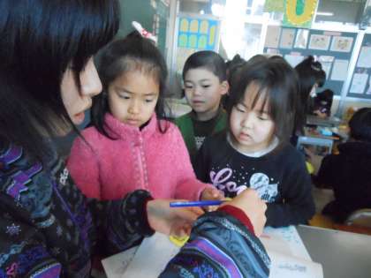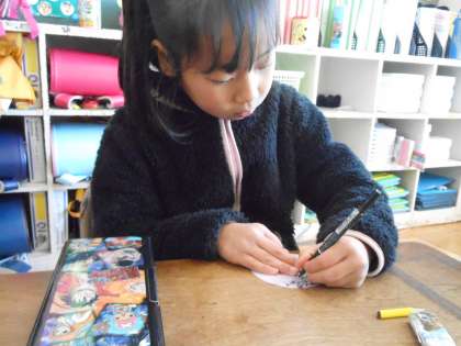 ペアで仲良くしてもらった6年生に、お礼のプレゼントを作っています。