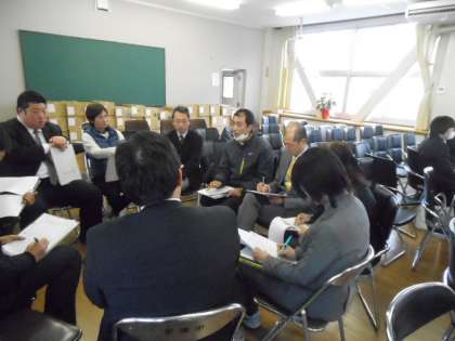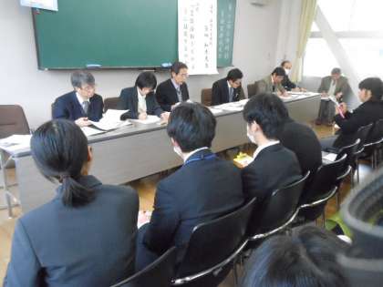 研修経過や授業者からの話のあと、小グループに分かれてグループワークをしました。言語科の英語、言語活動、小・中の接続などについて、意見交換をしました。