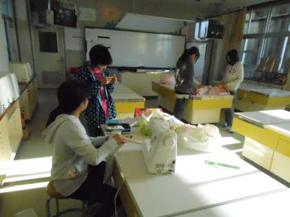 6年生の有志が、毎朝、「家庭科室の鍵を貸してください。」と職員室にやってきます。『学校のためにできることを…』と、教室にある扇風機にかけるカバーを作るためです。