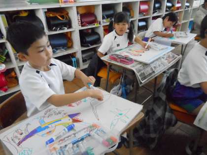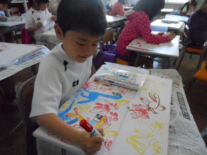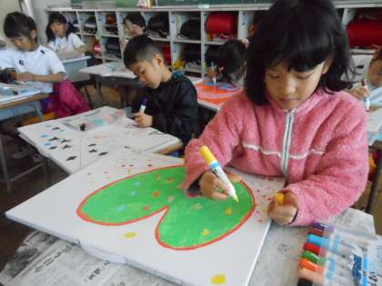 丁寧に色を塗り、みんな夢中で取り組んでいました。