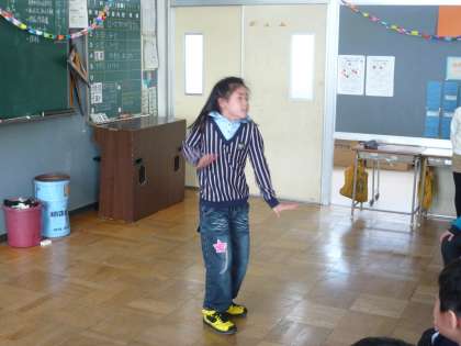 お楽しみ会の中で、新体操、ダンス、手品など、自分の得意なことを披露しました。