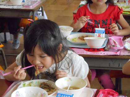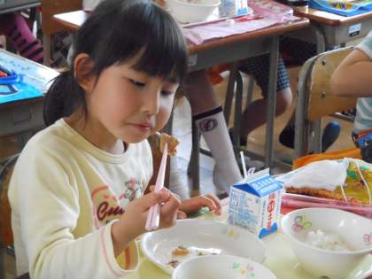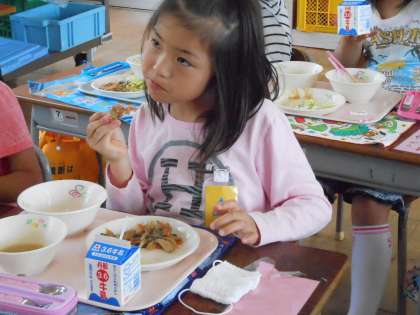 1年生は様々な表情で、給食の時間を楽しんでいました。