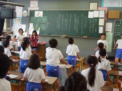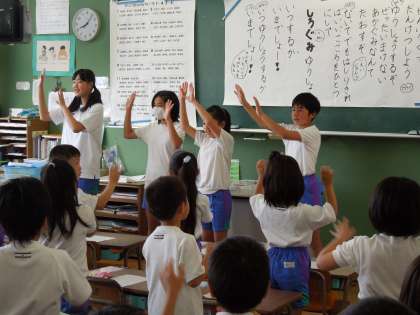 応援団の5,6年生が応援歌を教えに各教室に行き始めました。どの教室からも元気な歌声が聞こえてきます。