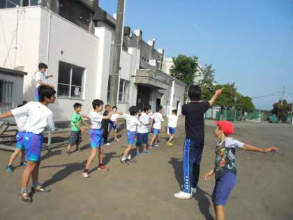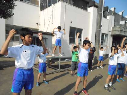 5・6年生のライン・体操係の子は、運動会の最初のラジオ体操に向けて練習を重ねています。手本のため、逆から踊り始めなければなりませんが、みんなでがんばっています。