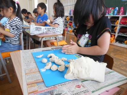 ねんどでつみき 1年・図工 2