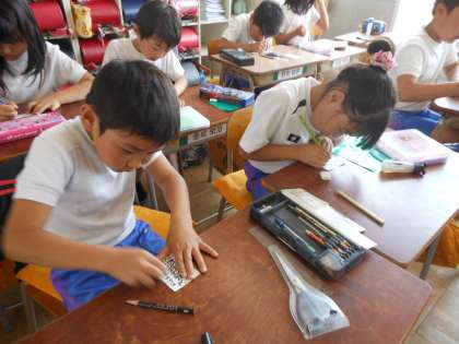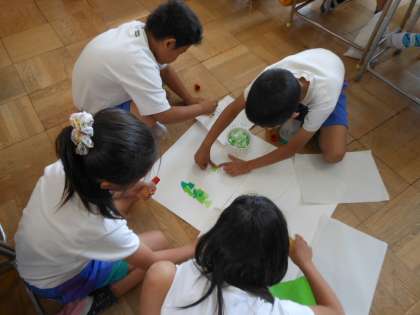 各クラスに分けられた運動会スローガンの一文字を全員で仕上げ、一人ひとりのめあてをカードに書きました。クラスみんなが心を一つにして、運動会に向かっています。