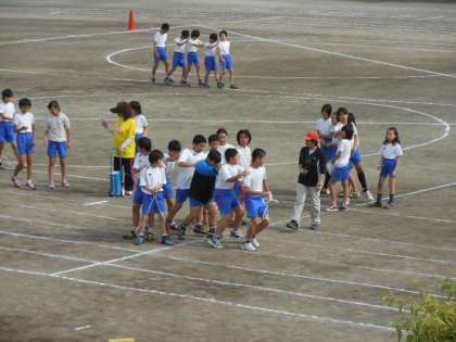 朝から運動会の団体競技「ムカデの成長」の練習です。応援練習と重なり、なかなか全員がそろいませんでしたが、数少ないチャンスを利用して練習しています。学級で練習すればするほど上達する種目です。これからの練習量が本番の成績に大きくかかわることでしょう。楽しみです!