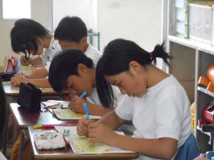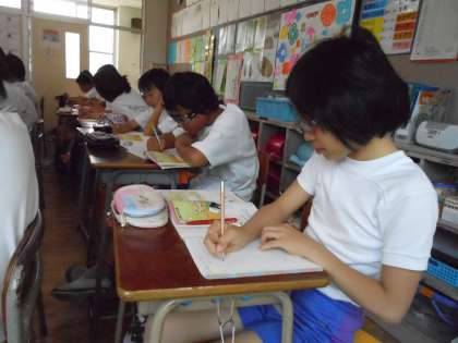 連日の運動会の練習でつかれはたまっていますが、気持ちを入れ直して算数の勉強です。今日から「分数のかけ算」に入りました。○デシリットルのペンキでぬれる壁の面積は?ますに色をぬりながら考えました。